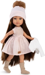 We presenteren de pop Penelope, die pronkt met haar realistische uiterlijk en volledig vinyl lichaam. De lokken van de pop zijn "gegroeid" over het hele hoofd en kunnen worden gekamd, wat het mogelijk maakt om vele mooie kapsels te creëren. De armen en benen zijn bevestigd met een scharnier, wat gemakkelijke manipulatie en positionering van de pop mogelijk maakt, inclusief zitten.