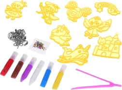 Maak samen met je kinderen je eigen sprankelende bedeltjes met deze creatieve set, die 8 sprookjessjablonen van rubber, 6 eenvoudig aan te brengen kleuren, steentjes, een pincet en metalen kettinkjes bevat. In de uitgediepte vormen kleuren is schoon en precies – de verf loopt niet over – en de afgewerkte creaties kunnen kinderen met trots aan hun rugzak of sleutels dragen.