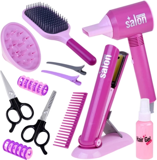 De kinderföhn en -stijltang bootsen echte tools na en stimuleren rollenspel. Licht- en geluidseffecten versterken de authentieke salonsfeer.