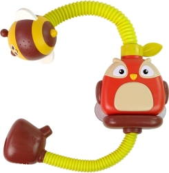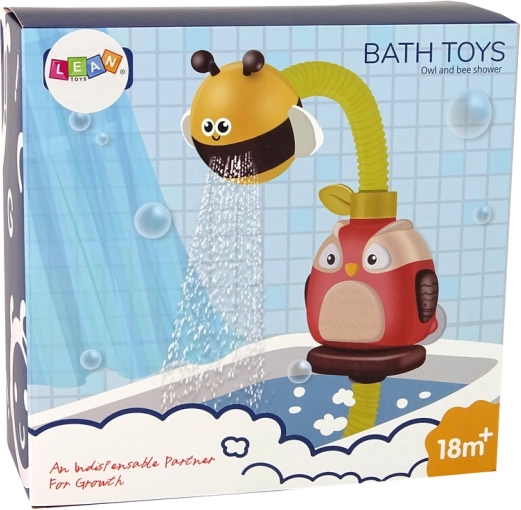 Een schattig badspeeltje in de vorm van een uiltje met een douche als een bijtje maakt van elk badmoment een feestje. Dankzij de zuignappen bevestig je het eenvoudig in het bad; bij het indrukken van de snavel wordt water aangezogen en stroomt het uit de bovenste douche. Het speeltje stimuleert de zintuiglijke ontwikkeling, herkenning van kleuren en vormen en helpt kinderen vertrouwd te raken met water. Geschikt voor kinderen vanaf 18 maanden.