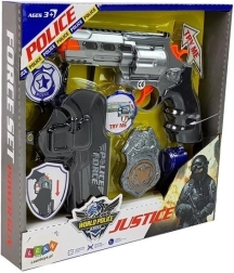Deze politie-uitrusting is ideaal voor carnaval, themaspel en alledaagse avonturen. De revolver in zilver-zwarte kleur geeft bij het overhalen van de trekker en bij het herladen een schotgeluid en wordt vergezeld door een lichteffect, waardoor het spel nog realistischer wordt. Kinderen ontwikkelen spelenderwijs hun fantasie, rollenspel en sociale interactie.