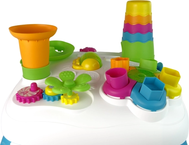 De kleurrijke interactieve tafel voor de allerkleinsten biedt spel en leren in één. Met lichteffecten, een vormensorteerder, een knikkerbaan, draaibare tandwielen en afneembare pootjes. Ondersteunt de fijne motoriek, herkenning van vormen en kleuren en zintuiglijke ontwikkeling. De stabiele, veilige constructie van niet-giftige materialen is ideaal voor kinderen vanaf 18 maanden.