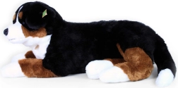 Deze grote pluchen Berner Sennenhond valt op door zijn realistische uiterlijk, zachte vacht en prettig gewicht dat uitnodigt om te knuffelen. Het aantrekkelijke design met zwart‑wit‑bruine driekleur en zachte oortjes maakt hem tot een geweldige speelkameraad bij spelen, lezen en in slaap vallen.