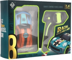 Kleine afmetingen, groot plezier. Deze RC raceauto 1:32 met een aantrekkelijke oranje-blauwe look en sportieve details is perfect voor de eerste ervaringen met afstandsbediening. Hij rijdt vooruit, achteruit, naar links en naar rechts, zodat hij gemakkelijk een hindernisbaan in de kamer of op een glad oppervlak buiten aankan.