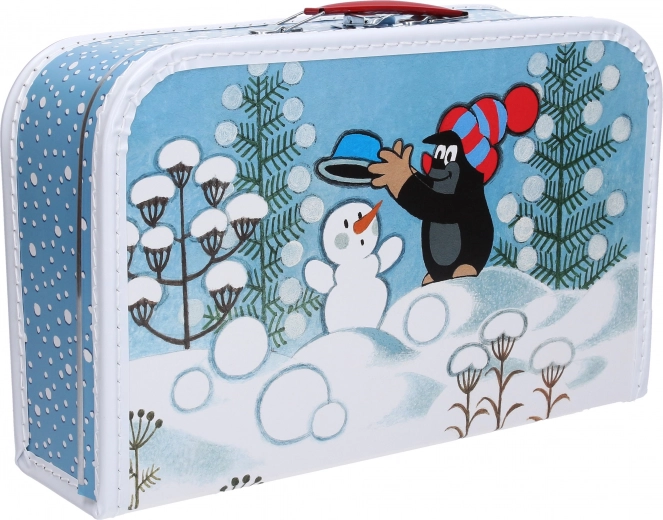 Schattig kinderkoffertje met het motief MOLLETJE en de sneeuwman, ideaal voor uitstapjes, natuurkampen en weekendverblijven. De compacte afmetingen 35 × 23 × 10,5 cm en de lichte constructie zorgen voor comfortabel dragen voor kleine reizigers.
