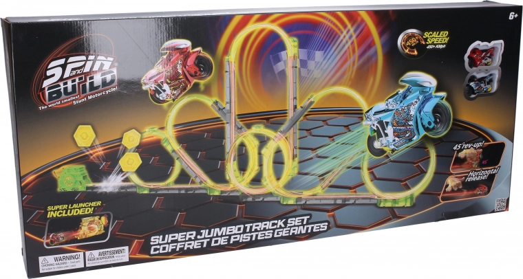 Beleef onvergetelijke avonturen met deze superbaan, die wordt geleverd met twee motorfietsen uitgerust met een gyroscoop voor stabiele ritten. De lanceerinrichting zorgt voor een snelle start en de motorfietsen met een actieradius tot 50 meter testen je vaardigheid om op afstand te rijden. Elke motorfiets heeft een compacte grootte van 4,5 cm, wat ideaal is voor snelle en wendbare ritten. Om je verzameling uit te breiden, zijn extra motorfietsen apart verkrijgbaar.