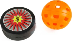 De verpakking bevat alles wat nodig is voor een snel spel: een bal, een puck en twee sticks.