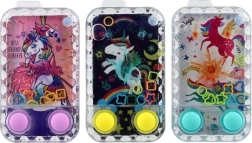 De Watergame Eenhoorn is een geweldige manier om kinderen te vermaken en tegelijk hun concentratie en geduld te ontwikkelen. Het principe is eenvoudig maar verslavend: door op de knoppen te drukken probeer je de drijvende ringetjes op de pinnetjes te krijgen. Dit spel is verkrijgbaar in meerdere varianten met magische eenhoornmotieven.