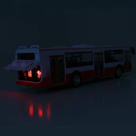 Deze gedetailleerd uitgewerkte kunststof bus van 28 cm brengt elke kinderrit tot leven. Bij het openen van de deuren klinkt halte-aankondiging in het Tsjechisch, bij het sluiten knipperen de voorlichten. Dankzij de pull-back functie rijdt de bus vanzelf weg en zorgt voor volop actieplezier.