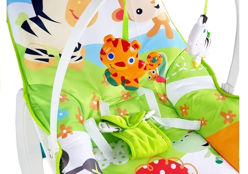 Dankzij de veiligheidsgordels is uw kind veilig terwijl het geniet van het comfort en het plezier van de schommelstoel.