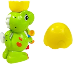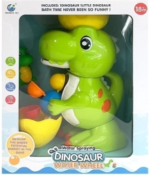 De groene dinosaurus heeft ook een kleintje, waarmee je kindje ook in het water kan spelen. De kleurrijke molen zorgt bij elk badmoment voor plezier. Je hoeft alleen water te scheppen en het vervolgens in de halve schaal op de kop van de dinosaurus te gieten. Het water stroomt uit de bek van de dinosaurus en loopt daarna over de gekleurde wieltjes, waardoor ze gaan draaien.