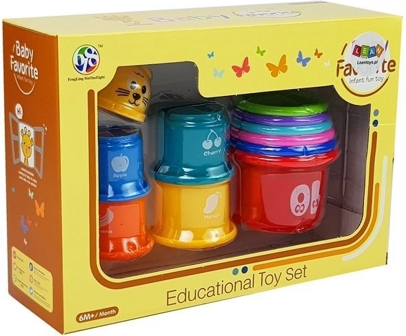 Elk bekertje heeft een andere markering, wat kinderen helpt niet alleen motorische vaardigheden te ontwikkelen, maar ook kleuren en vormen te leren. Dit speelgoed stimuleert creativiteit en logisch denken; er zijn geen regels voor hoe je ermee speelt, wat het een geweldig hulpmiddel maakt voor de fantasie van zowel kinderen als ouders. Het kleurrijke en kwalitatief uitgevoerde speelgoed nodigt elk kind uit om al spelenderwijs te leren.