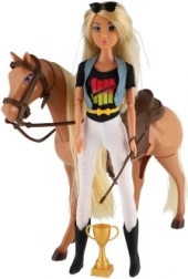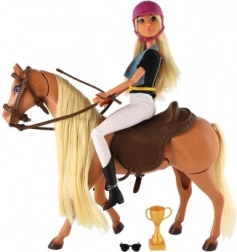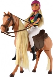 De pop heeft beweegbare gewrichten voor natuurlijk poseren en gemakkelijk in het zadel zitten. Inclusief ruiterhelm en kleding, waardoor ze klaar is voor een ritje én voor wedstrijden.