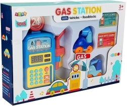 Een leuke kinder-tankstation in blauw-gele uitvoering biedt realistisch tankspel met autootjes. Voorzien van licht- en geluidseffecten, Engelse spraakaanwijzingen, een sleuf voor betaalkaarten en een liter-teller bij het indrukken van de hendel. Inclusief 2 vrolijke autootjes (betonmixer en brandweerauto met ladder), verkeersborden, pionnen en andere accessoires voor eindeloos creatief spel.
