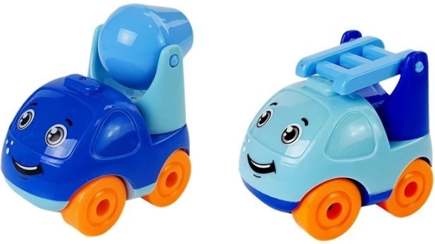 De set bevat een betonmixer en een brandweerauto met ladder – ideale maatjes voor verhalen over bouwen en redden.