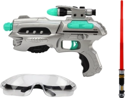 Pistool, lichtzwaard, veiligheidsbril