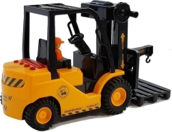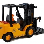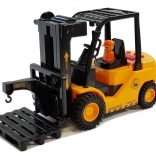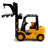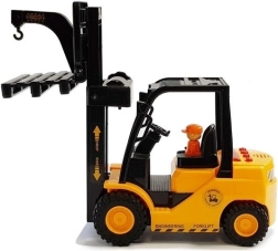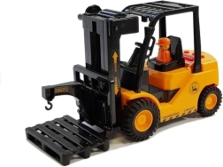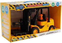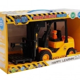 Een realistische kinderheftruck in oranje met beweegbare vorken, een praktische haak voor lading en interactieve licht- en geluidseffecten. Dankzij de rubberen wielen rijdt hij soepel en stabiel, wat motorische ontwikkeling en creatief spel stimuleert.