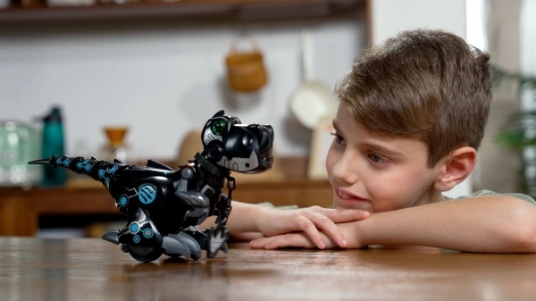 De dinosaurus reageert op handbewegingen en zachte aanrakingen. Kinderen kunnen zo de richting wijzigen, acties uitvoeren of geluids- en lichteffecten activeren zonder de controller te gebruiken.