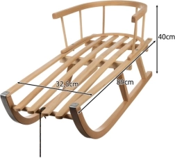Houten slee met rugleuning is gemaakt van hard beukenhout, wat zorgt voor een lange levensduur en duurzaamheid. De slee is uitgerust met metalen ski's voor een soepele glijbeweging op alle sneeuwoppervlakken. Dankzij het ontwerp met rugleuning biedt het stabiliteit en comfort voor kleine kinderen, en door de mogelijkheid om de rugleuning te demonteren, is het ook geschikt voor oudere kinderen.