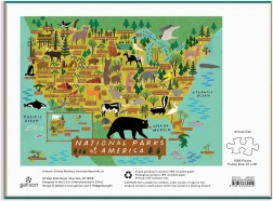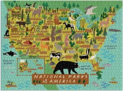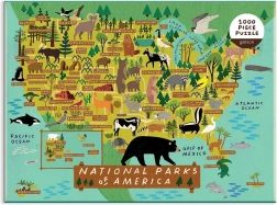 Een stijlvolle puzzel van GALISON met een gedetailleerde illustratie van de kaart van de Verenigde Staten met gemarkeerde nationale parken en typische dieren. Dankzij de 1000 stukjes geniet je van uren puzzelplezier en het resultaat is een indrukwekkend panoramabeeld dat ook geschikt is om in te lijsten.