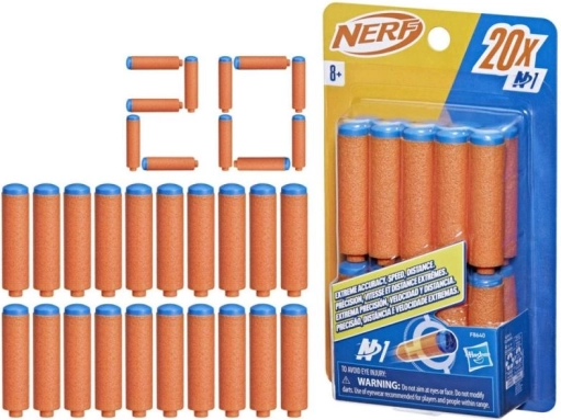 Nerf reservepijlen N-Series, 20 stuks. Kwalitatieve schuimpijlen voor betrouwbare prestaties en veilig speelplezier. Ideaal om je voorraad aan te vullen voor je Nerf-gevechten.