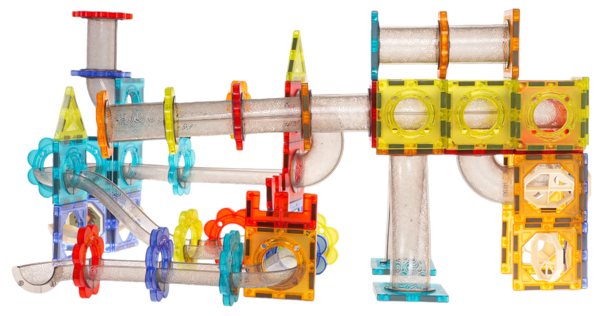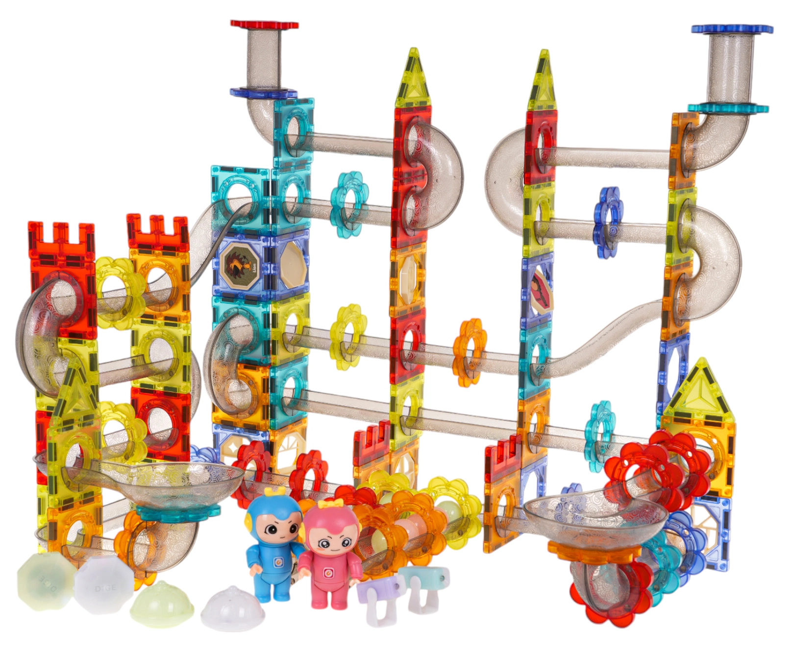 - Ontwikkeling van creativiteit: De set bevat in totaal 228 onderdelen in verschillende vormen en kleuren, waaronder transparante stukjes, magnetische knikkers, doorgangen en veel ander accessoires. Dit alles stimuleert de creativiteit en fantasie van kinderen.