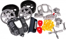 In de doos zitten wielen met wieldoppen, 31 schroeven, gereedschap, decoratieve stickers en een handleiding. Plezier met lichteffecten van koplampen en motor, plus rij- en achteruitrijgeluiden, houdt kleine autoliefhebbers lang bezig.