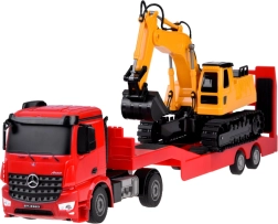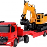 Verras jonge bouwers met deze geweldige bouwset met afstandsbediening van Mercedes-Benz, die realistisch speelplezier biedt met een vrachtwagen, aanhanger en graafmachine op schaal 1:26.