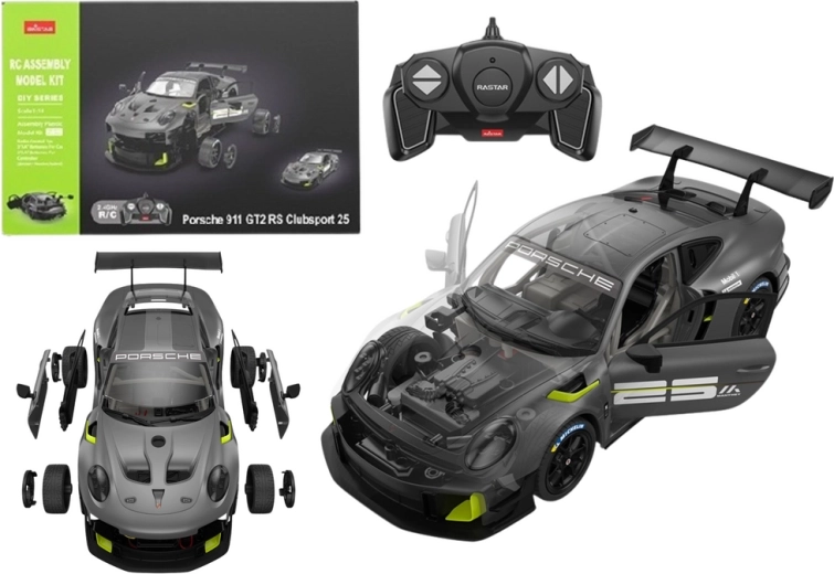 Inhoud van de set: Porsche-model, afstandsbediening, 68 bouwdelen. Vereist 3x AA en 2x AA batterijen (niet inbegrepen).