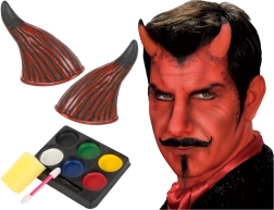 Maak kennis met de make-upset waarmee je je look snel en effectief in die van een duivel verandert. Deze set bevat kunstmatige horens, een palet met gezichtsverf en tools voor eenvoudig en precies aanbrengen. Intense kleuren zorgen voor een langdurig effect en de romige textuur is gemakkelijk te gebruiken.