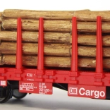 Aantrekkelijk model van een vierassige plattewagen Roos‑t met staken en een lading boomstammen, in de uitvoering van de Duitse Spoorwegen. Wagons van dit type worden ook gebruikt voor het vervoer van andere halfproducten van hout of zelfs staal. De realistisch uitgewerkte lading is uitneembaar en ook de positionering van de staken kan worden aangepast. In de verpakking zitten bovendien enkele reserve‑staken. Dankzij de verfijnde spuitgietdelen, de hoogwaardige contrasterende lak en de scherpe bedrukking komen de details van de constructie en de bedieningsuitrusting uitstekend tot hun recht. De vloer van de wagen geeft ook de groefstructuur van het oppervlak natuurgetrouw weer; de fronten zijn verder verfraaid met extra aangezette handgrepen en opstappen. Voor meer variatie in treinsamenstellingen met eerder door de fabrikant uitgebrachte modellen van dit type is de wagonaanduiding gewijzigd. Het nauwkeurig ontworpen en gemonteerde draaistel staat garant voor eersteklas rijeigenschappen. Belangrijkste kenmerken: vier assen, natuurgetrouw uitgewerkte lading, afneembare staken, NEM 362‑schacht met kortkoppelingkinematica