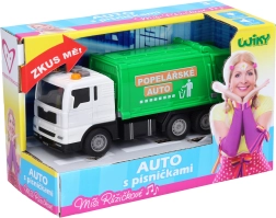 Bereid je voor op actie met de vuilniswagen van 17 cm, die wordt aangedreven door een vliegwiel. Dankzij de lichteffecten en geluiden biedt het een realistische ervaring. De knoppen op de cabine activeren drie liedjes van Míša Růžičková: Vuilniswagen, Politie en Ambulance.