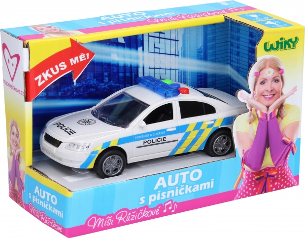 Deze politiewagen is het perfecte speelgoed voor kinderen vanaf 3 jaar. Dankzij de vliegwielaandrijving is het spelen met de auto leuk en realistisch. Licht- en geluidseffecten, die met knoppen op het dak van de auto worden geactiveerd, bieden vrolijk vermaak en stimuleren de kinderlijke verbeelding. Bevat drie favoriete liedjes van Míša Růžičková: Politie, Ambulance en Vuilnismannen.