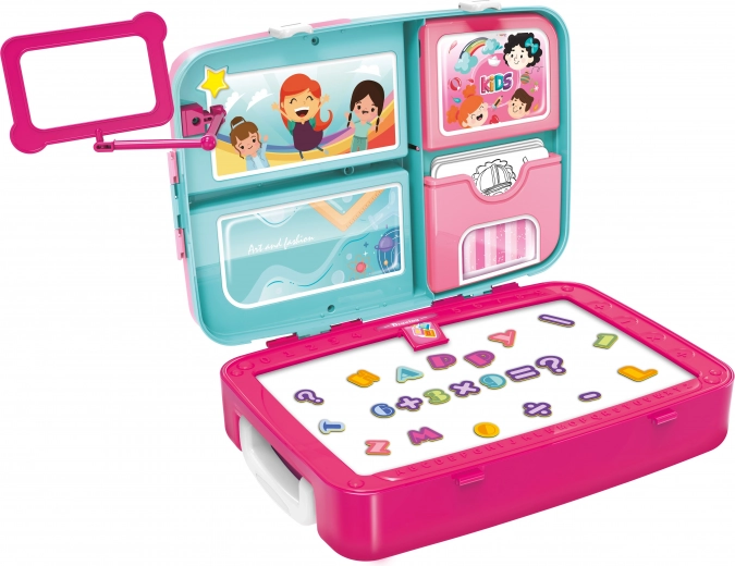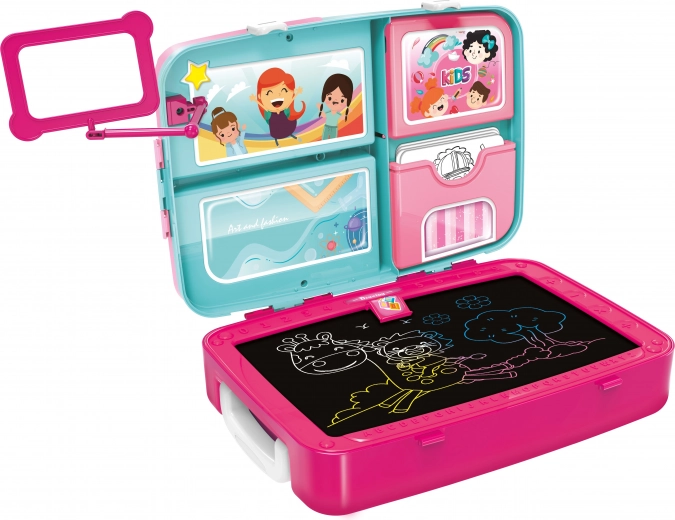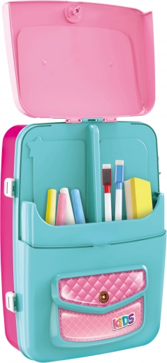 Deze creatieve kinderrugzak in roze met een formaat van 28 cm is de ideale metgezel voor uw kind. Bevat praktische vakken voor tekenspullen en een magnetisch bord voor krijt en uitwisbare stiften.