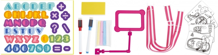 - Geïntegreerde magneetjes voor spel met cijfers en letters.
