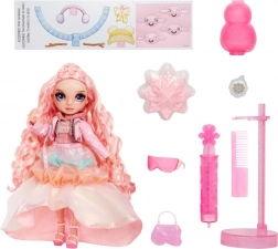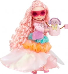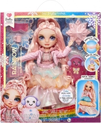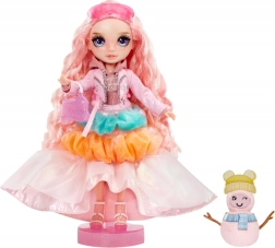 De wintereditie van RAINBOW HIGH brengt de pop Bella in zachte roze tinten met speelse details. De magische sneeuw verrast je: voeg water toe en de outfit wordt fluffy en onthult nieuwe kleuren. In de verpakking vind je ook een standaard, kam en winterse accessoires, plus een set om je eigen sneeuwpop te maken. De pop is volledig beweegbaar (11″) voor creatieve poses en eindeloze verhalen.