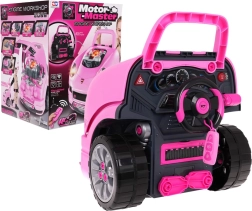 Het interactieve voorstuk van het voertuig met dashboard en automatische “versnellings”-hendel biedt kinderen een realistische rij- én service-ervaring. Na het indrukken van start klinkt het startgeluid, en tijdens rijden of achteruitrijden worden bijpassende effecten geactiveerd. Onder de motorkap zit een grote uit elkaar te halen motor, waar kleine monteurs “bougies”, wielen en andere componenten kunnen vervangen.