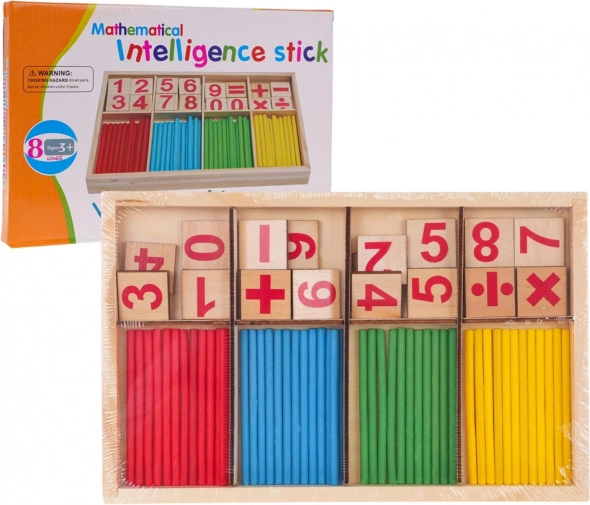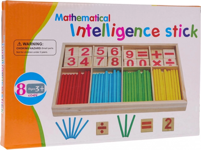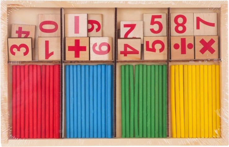 Een leuke en leerzame set voor kinderen vanaf 3 jaar die logisch denken en fijne motoriek ontwikkelt. De houten basis met vakjes, gekleurde staafjes en blokjes met cijfers en sommen helpt bij het oefenen van optellen, aftrekken, vermenigvuldigen en delen. Duurzame houten uitvoering garandeert een lange levensduur en veilig speelplezier.