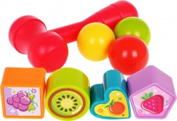 • Rijke accessoires: 4 blokken, 3 rammelballetjes en een hamertje