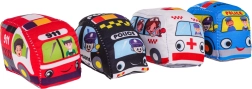 Brandweerauto, ambulance, politiewagen en bus in vrolijke kleuren nodigen uit tot spel en rollenspel.