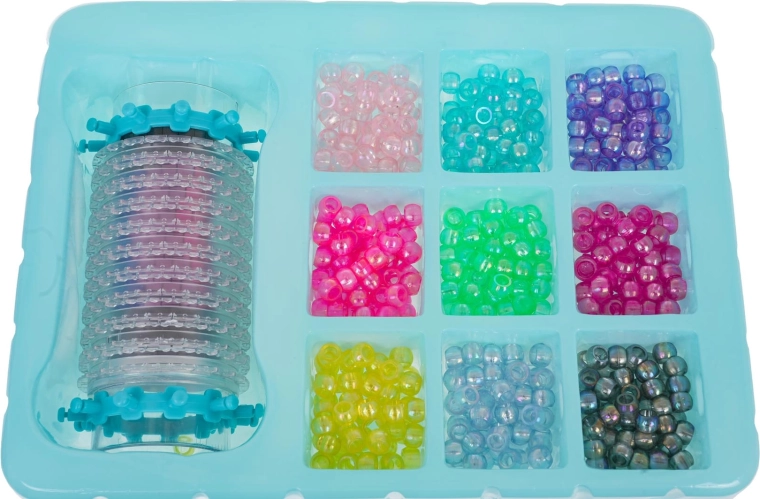 Deze complete set maakt het voor kinderen eenvoudig en leuk om originele armbanden te maken. Plaats de kunststof buis op de standaard, strooi de kralen in de overzichtelijke vakjes, kies een patroon van de sjabloon of creëer naar eigen fantasie en begin van rechts naar links te weven. De set is kleurrijk, intuïtief en ideaal voor de eerste stapjes in handwerk.