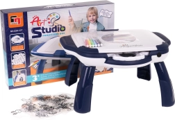 Het tafeltje is gemaakt van hoogwaardige kunststof, heeft stabiele pootjes die kunnen worden gedemonteerd en een praktische handgreep voor gemakkelijk dragen. De voeding werkt op 3× AA 1,5 V-batterijen (niet inbegrepen). In de verpakking vind je ook 6 gekleurde stiften, zodat je direct na het uitpakken kunt beginnen met tekenen.