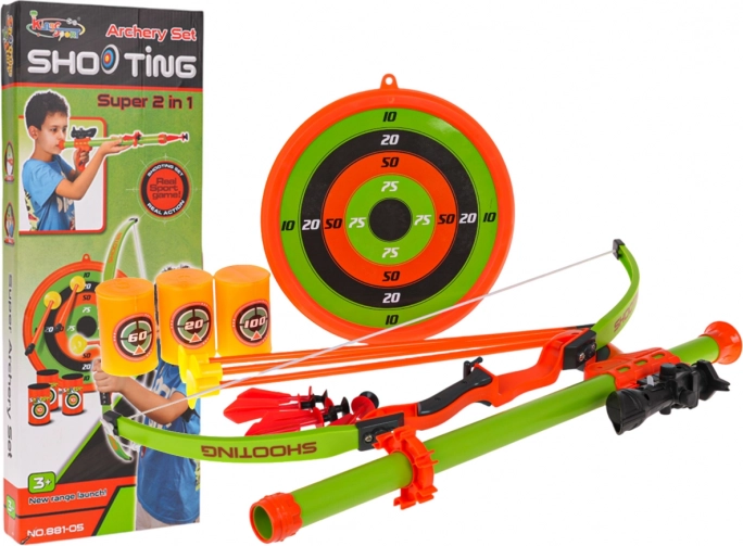 Ondersteun nauwkeurigheid, concentratie en beweging met de veelzijdige 2-in-1 set. Kinderen kunnen schieten met de boog en met het pistool met zuignap-munitie, hun trefzekerheid op de schietschijf oefenen en veilig plezier maken. Dankzij de duurzame uitvoering en het aantrekkelijke design is de set een geweldig cadeau voor kleine avonturiers.