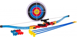 - boog, 3× pijl met zuignap, 6× werp-dart met zuignap, doel met rubberen zuignap