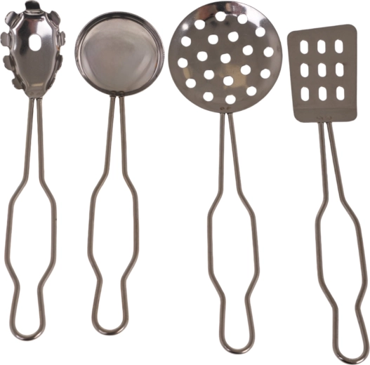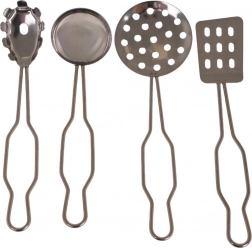 Inclusief tang, soeplepel, spatel en geperforeerde lepel – alles wat kinderen nodig hebben om te koken en te serveren.