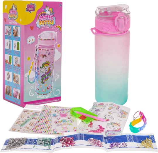 Het materiaal van de fles is BPA-vrij en geschikt voor kinderen. In de verpakking vind je ook een polsband/koord voor gemakkelijk dragen, een tool voor het aanbrengen van steentjes en overzichtelijke sjablonen. Een geweldig cadeau voor kleine liefhebbers van eenhoorns.