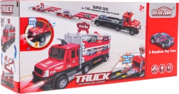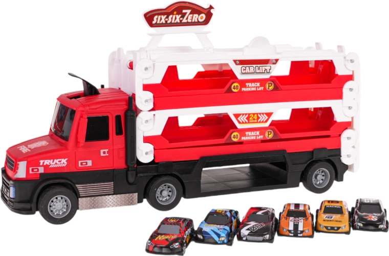 Door op het voorste deel van de vrachtwagen te drukken, worden motor- en remgeluiden en knipperende koplampen geactiveerd, voor een extra realistische speelervaring. In de verpakking vind je meteen 6 metalen autootjes, zodat je direct na het uitpakken kunt racen.