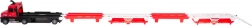 Plaats het autootje op het onderste niveau en druk op de hendel op het dak van de truck. De lanceerder schiet de auto naar voren over de uitgeklapte baan.