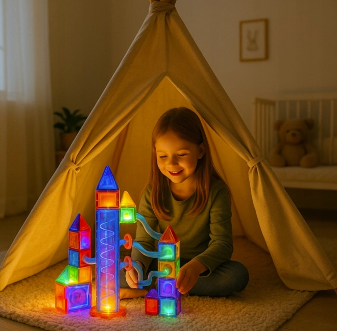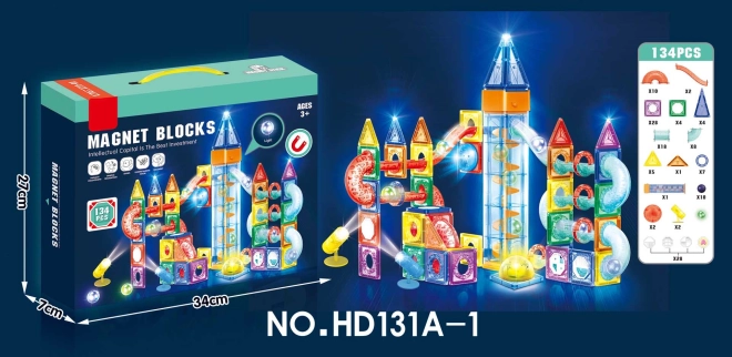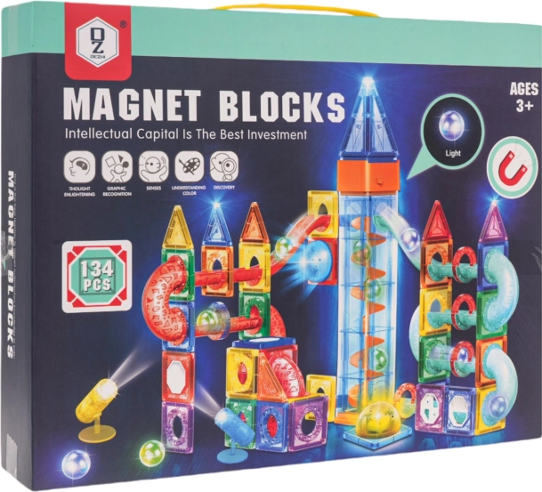 Deze kleurrijke magnetische bouwset combineert klassieke magnetische vormen met transparante tunnels en actie-elementen die elk bouwwerk in een fascinerend spektakel veranderen. Kinderen kunnen originele knikkerbanen creëren waarover lichtgevende knikkers razen, terwijl LED-spotlights en een sterrenprojector het spel een betoverende sfeer geven. De aandrijf-lift brengt de knikkers terug naar boven en zorgt voor eindeloos speelplezier.