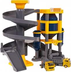 De Bouwbaan met Accessoires omvat een silo, glijbanen en bouwvoertuigen zoals een betonmolen en een kiepwagen, waarmee kinderen echte bouwprocessen kunnen simuleren. Dankzij het hoogwaardige plastic en de goed uitgewerkte details is de set duurzaam en veilig voor kleine bouwers.